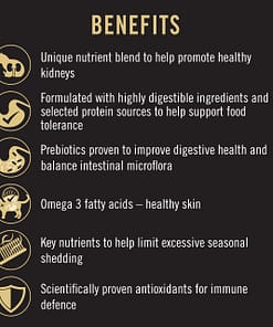 liver flavour); poultry oil; pea protein; fish oil; chicory; dried Bacillus coagulans fermentation product and natural antioxidants.