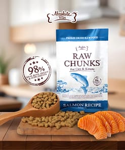 Raw salmon provides a rich source of high-quality protein, easily digestible, suitable even for cats with sensitive stomachs. It contains omega-3 fatty acids and essential amino acids that improve coat and skin condition, supporting muscle growth, maintenance, and overall body function. Most cats enjoy its taste, promoting healthy eating habits. Our salmon are wild caught without added hormones or antibiotics. A complete and balanced nutrition for cats.
