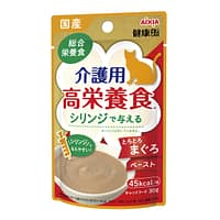A paste-type comprehensive nutritional food that is easy to feed and maintains health for cats that require dietary care. A high calorie design suitable for cats who are eating less. In consideration of kidney health maintenance, phosphorus and sodium are adjusted. It also contains glucosamine, which supports joint health, and medium-chain fatty acid oil, which is easily converted into energy. In addition, it contains DHA that maintains brain health, oligosaccharides that support intestinal health, and vitamin E that maintains health and immunity. It is a soft paste that is easy to apply with a syringe and is easy to use for nursing care.