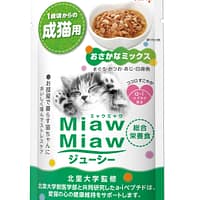 Ingredients | Fish (Skipjack Tuna, Tuna, Blue Fish, Fish Peptide), Chicken, Protein Hydrolyzate, Wheat Gluten, Fat (Chicken Fat, Soybean oil), Dried Whole Egg, Pea Protein, Sugar (Sucrose, Lactosucrose), Dried Egg Yolk, Thickening Agent (Modified Starch, Jelly Agents), Minerals (Ca, P, Fe, Cu, Mn, Zn, I, Se), Sodium Tripolyphosphate, Flavouring, Coloring Agents (Titanium Dioxide, Iron Sesquioxide, Caramel, β-carotene), Vitamins (A, D, E, K, B1, B2, B6, B12, Niacin, Pantothenic Acid, Folic Acid, Biotin, Choline), Taurine, Color Former (Sodium Nitrite) |