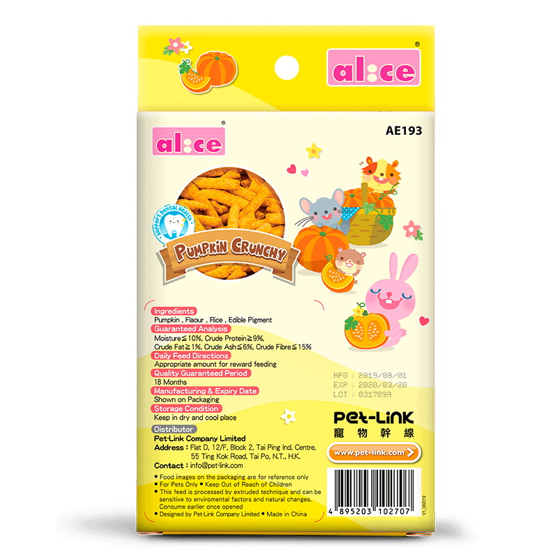 | Ingredients | Pumpkin, Flour, Rice, Edible Pigment |