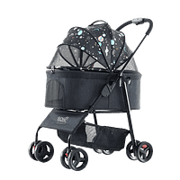 Introducing the BNDC 102 pet pram, weighing a mere 7kg, combining convenience and functionality effortlessly. With a maximum load capacity of 10kg, it’s the ideal solution for transporting your cherished pets. Boasting large zippered ventilation windows, including a front window zipper, this pram ensures optimal airflow and visibility for your furry companions. Its user-friendly design allows for easy one-click, one-handed folding. The inclusion of a multi-functional shelf provides ample space to store essentials such as keys, cups, and phones. Prioritizing safety, our pram features a safety fastener to secure pets inside, accompanied by an additional storage basket compartment for added convenience. Moreover, its anti-shock 360° front wheels, paired with one-key braking for the rear wheels, guarantee a smooth and secure ride, making it an excellent choice for pet owners seeking both practicality and comfort.