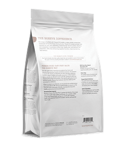 The first was freeze-dried with full suite of Vitamin B Complex supplements. Made with up to 98.8% free-range meat, organs, and finely ground bones, bursting with nutrient-rich enzymes, vitamins,
