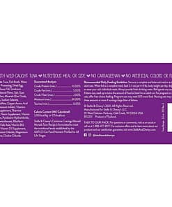 Tuna, fish broth, water sufficient for processing, dried egg, tapioca, sunflower oil, tricalcium phosphate, natural flavor, salt, guar gum, dandelion, minerals (zinc oxide, reduced iron, sodium selenite, manganese sulfate, copper amino acid complex, potassium iodide), vitamins (vitamin E supplement, thiamine mononitrate, niacin supplement, vitamin A supplement, pyridoxine hydrochloride, d-calcium pantothenate, riboflavin supplement, folic acid, vitamin B12 supplement, vitamin D3 supplement, biotin), potassium chloride, magnesium sulfate, taurine, choline chloride