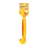 A tennis ball with a difference! This Cosmo Rubber Ball Dog Toy contains a tennis ball. It will give your small dog something great to chew and chase about.