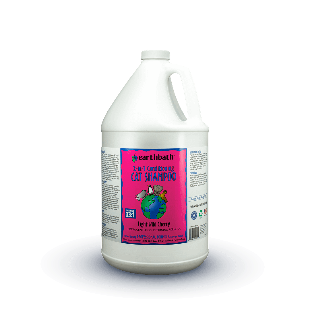 Natural conditioners and aloe vera soften the coat, re-moisturize the skin, and add manageability, brilliance and shine. Our ultra-mild coconut-based cleansers and the subtle scent of wild cherries will leave her smelling fresh and deliciously clean. Will not wash off topical flea applications. Safe for all animals over 6 weeks old. To encourage peaceful co-existence in multi-cat households, use our Fragrance-Free Hypo-Allergenic Cat Shampoo.
