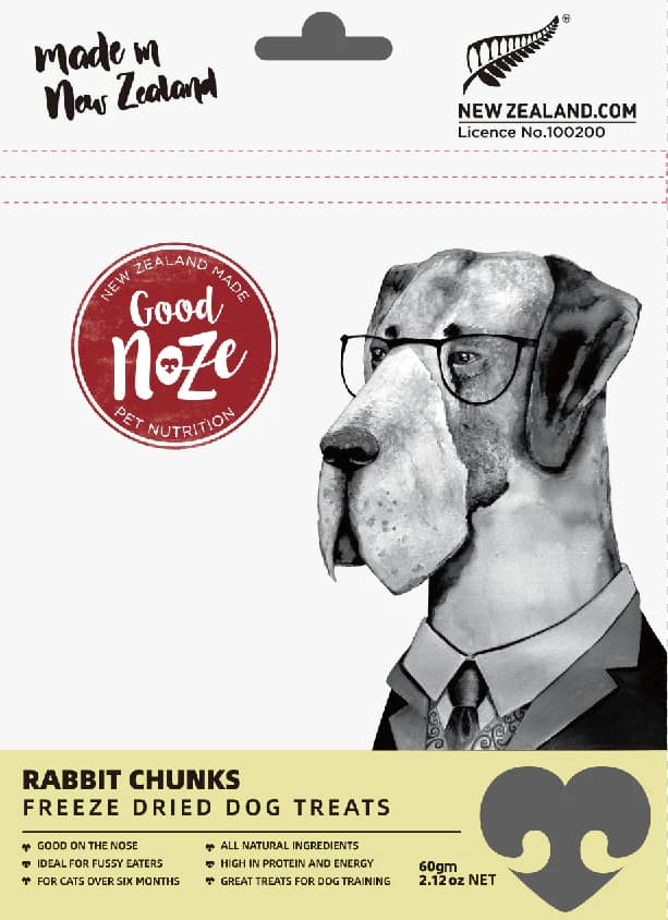Discover the ultimate nutrient-rich snack for your canine companion: Good Noze Rabbit Chunks Freeze Dried Dog Treats.