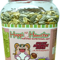 Wheat, Oats, Wrinkled Peas, Soybean, Barley, Buckwheat, Ground Oats, Ground Corn, Sunflower Seeds, Safflower, Millets, Dehydrated Alfalfa Meal, Dehulled Soybean Meal, Dried Fruit and Vegetable mix, Fortified Hamster Kibbles