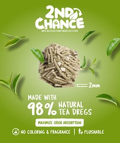 In our unwavering commitment to a greener future, we proudly present our 2nd Chance Ingredients Plant-based Cat Litter. Crafted from sustainable, post-food production materials like green tea drink, black tea drink, coffee drink, and pea fiber, it breathes new life into these resources while reducing waste. Our high-quality, plant-based food-grade raw materials showcase the natural goodness of extracted tea dregs, free from artificial fragrance or coloring. With the added benefits of tea polyphenols as a natural antioxidant and tea catechins for antibacterial and ant-fungal properties, our innovative solution embodies eco-consciousness and effectiveness.