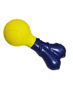 - Durable rubber dog bone and ball combined in one bouncy toy
