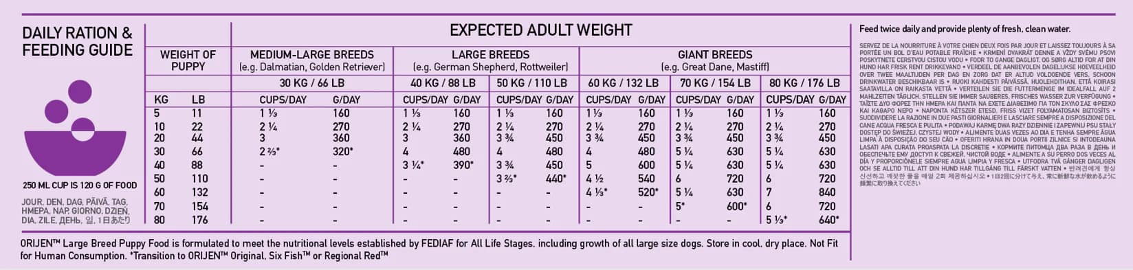 Help your large breed dog thrive with a Biologically Appropriate diet packed with whole animal ingredients. Our ORIJEN Large Breed Adult diet is tailored to the unique needs of large breed dogs, and it helps support key health benefits including Joint Health, Skin & Coat Health and Digestive Health.
