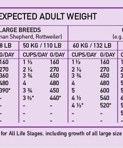 - Helps support your large breed dog’s digestive health with probiotics and a blend of fibers.