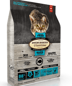 Our adult cat food is available in many different varieties to fit your cat’s lifestyle and tastes. With or without grains, made with chicken or fish, our adult cat food is slowly baked in small batches to bring out the great tastes while also maintaining the integrity of vitamins, minerals and proteins. With fresh deboned chicken or fresh fish as a first ingredient, Oven-Baked Tradition food for adult cats provides your pet with all the benefits of fresh and natural food, thanks to our mix of vegetables and fruits from selected farms.