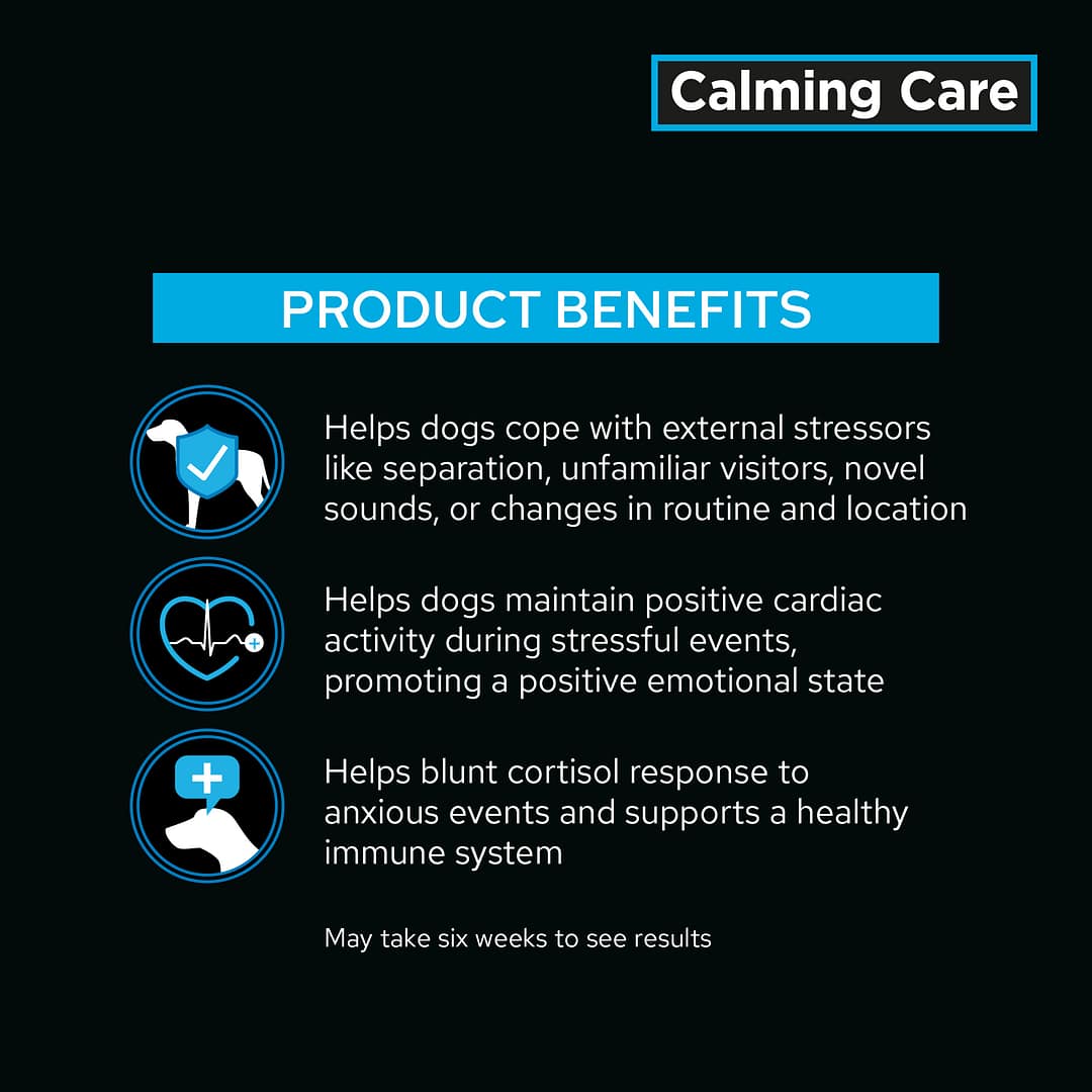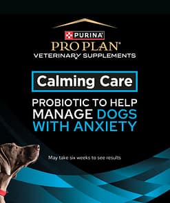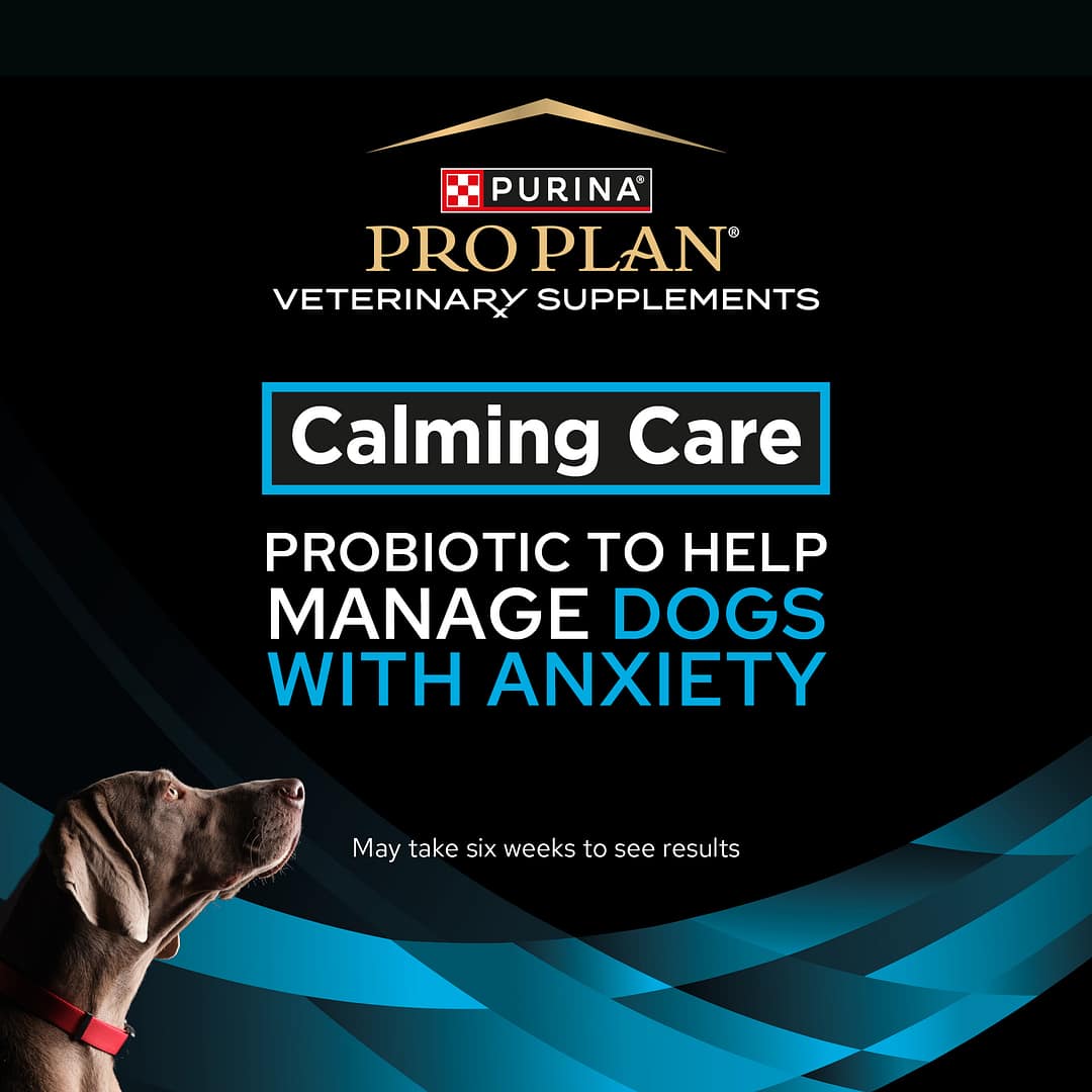 PRO PLAN Veterinary Supplements Calming Care contains a strain of beneficial bacteria shown to help dogs maintain calm behavior. The science behind our therapeutic products represents a collaboration between Purina nutritionists, researchers and veterinarians.