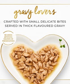 Fancy Feast Gravy Lovers range, crafted with small, delicate bites, slow-cooked and served in a thick flavour gravy.