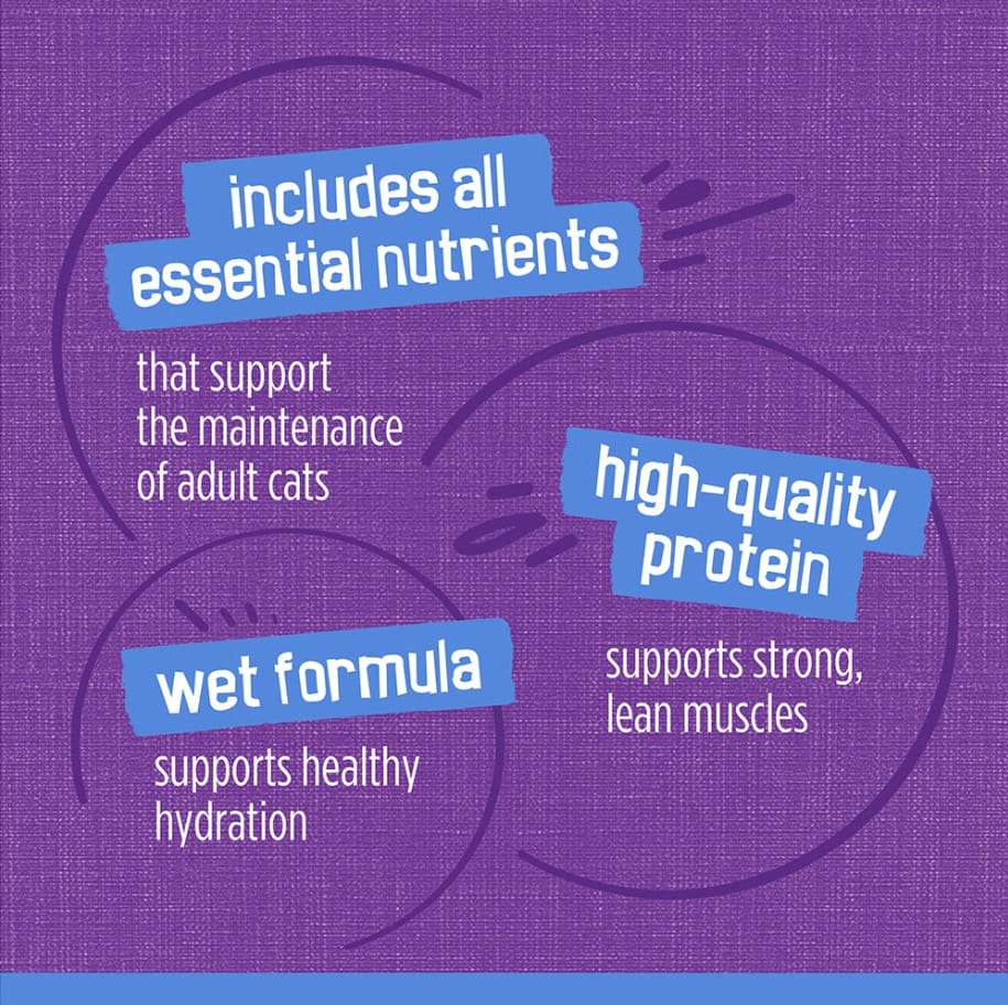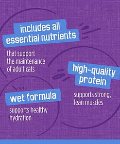 Feed adult cats 47 – 62.5g per kg of body weight daily. Divide into two or more meals. Calorie Content (calculated)(ME): 857 kcal/kg 134 kcal/can