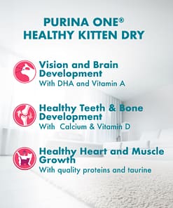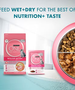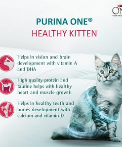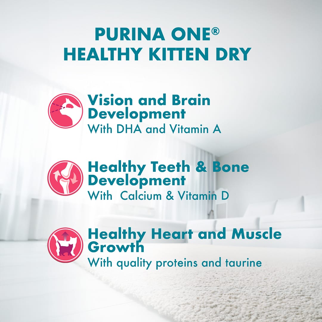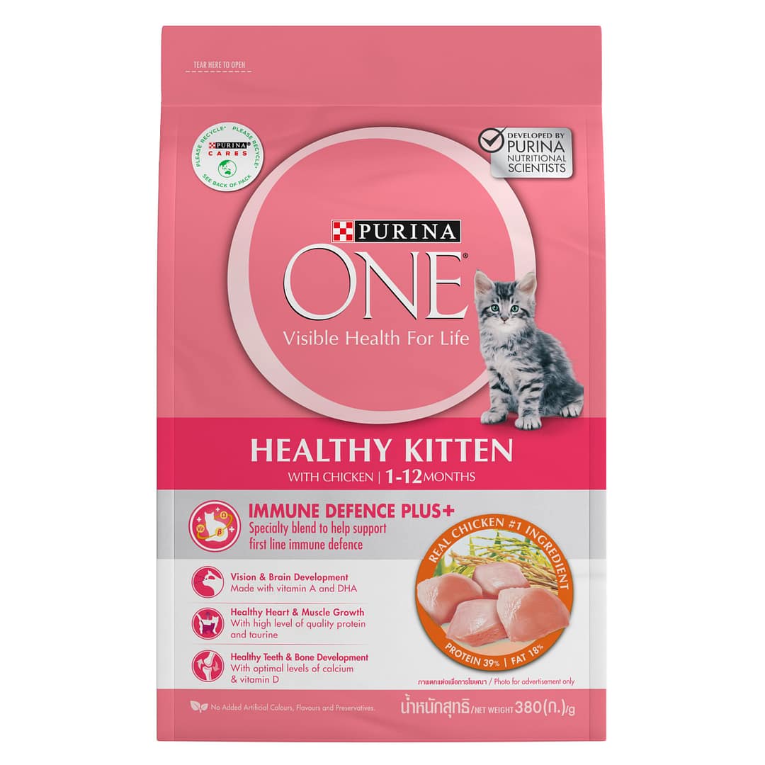 Developed by PURINA Vets and Nutritionists, Purina ONE Healthy Kitten with Immune. Defence Plus+ is made with 100% complete and balanced nutrition, and real chicken as the #1 ingredient, because delicious taste combined with superior nutrition is at the heart of your kitten’s health and happiness. All our recipes are made with no added artificial colours, flavours and preservatives.