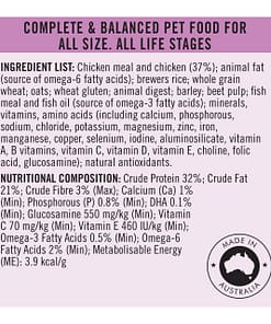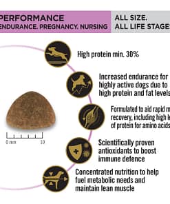 - Increased endurance for highly active dogs due to high protein and fat levels