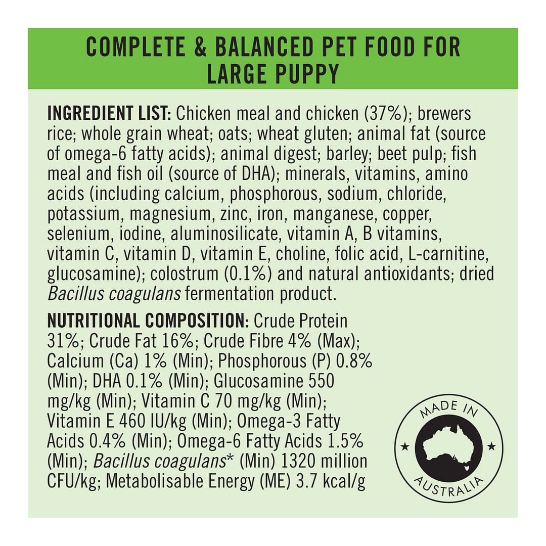 Purina PRO PLAN DOG FOOD LARGE PUPPYÂ is formulated to meet the nutritional levels established by AAFCO (Association of American Feed Control Officials) Dog Food Nutrient Profiles for Growth and Reproduction.