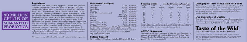 Species-Specific Probiotics – Healthy digestive and immune systems are vital to the overall health of your pet. Our proprietary K9 Strain Probiotics are developed specifically for dogs and added after the cooking process to ensure viability. Each pound of Taste of the Wild provides 80 million live, active cultures that help support healthy digestive and immune systems.