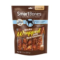 SmartBones® have all the benefits of a rawhide chew WITHOUT the RAWHIDE! NO RAWHIDE SmartBones® Skin & Coat Care Chews are made with REAL CHICKEN, wholesome VEGETABLES and essential FATTY ACIDS for a scrumptious taste, and a healthy skin and shiny coat!