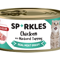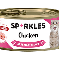 Sparkles is formulated as a 100% Complete and Balanced Diet + REAL MEAT for cats. With a healthy dose of broth for hydration, Sparkles sets the standard for delicious and healthy food for all cats to enjoy.