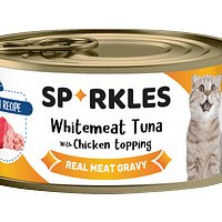 Sparkles is formulated as a 100% Complete and Balanced Diet + REAL MEAT for cats. With a healthy dose of broth for hydration, Sparkles sets the standard for delicious and healthy food for all cats to enjoy.