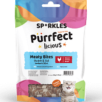 With meat as the first ingredient, Sparkles Meaty Bites is the purrfect treat for your feline companion. Each packet consists a blend of nutritious ingredients, preserving the original flavours of meat.