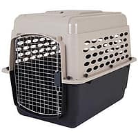 Carrier for medium sized dogs provided with a plastic hood, produced according to IATA regulation. Weight: 4,696 kg / 10,35 lbs
