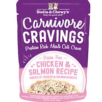 A protein-rich diet that includes real shredded poultry or fish, real nutrition, and real taste to get your cat purring! A perfect complete meal or tasty kibble topper!