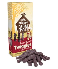 Russel Rabbit Twiggies with Apple & Blackberry are tasty baked treats fresh from our bakery, made with the wholesome goodness of natural grains and tasty fruits. Russel Rabbit Twiggies are perfect when you want to give your pet a tasty treat. They can be carefully hand-fed to your pets, helping you to build those special moments together. One or two can also be hidden around your pet’s enclosure to encourage natural foraging. And remember to give your rabbits lots of fresh hay daily and unlimited access to water. Russel Rabbit Twiggies are also suitable for guinea pigs, chinchillas, hamsters, gerbils, mice, and rats.