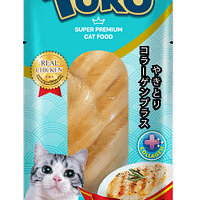 Toro Grilled Chicken Fillet Topping Katsuobushi is produced from 100% real and best quality chicken tenderloin, then grilled and added Katsuobushi toppings to enhance taste and aroma that is favourable to your cats. Toro Grilled Chicken is a nutritious cat treat, enriched with high protein and low-fat. You can create happy moments every time feeding toro to your beloved cat, as a reward, snack, or serving together with main meals.