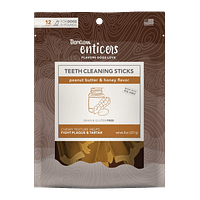 Contains 12 TropiClean Enticers Teeth Cleaning Sticks – Honey Marinated Chicken Flavor. Each stick is approximately 4.5 inches long.