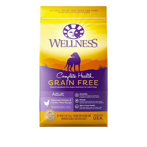 Wellness Complete Health Grain Free Adult Deboned Chicken & Chicken Meal Recipe Dog Food is formulated to meet the nutritional levels established by the AAFCO Dog Food Nutrient Profiles for maintenance.
