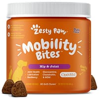 To maintain your pup’s skin health, Zesty Paws Salmon Bites can help you show Fido you care. With omegas, vitamins, and antioxidants, these soft chews are functional supplements that support skin health and provide free radical protection to keep your dog feeling happy. They’re great for small, medium, and large dogs of all ages and breeds!